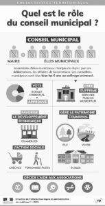 Les conseillers municipaux enfin, qui eux représentent directement les habitants de la commune. Ils participent aux débats, proposent des projets ou des amendements et votent les décisions du conseil municipal. Ils peuvent appartenir à la majorité municipale ou à l’opposition, ce qui permet d’avoir des débats et des points de vue différents sur les projets locaux. Leur nombre dépend de la taille de la commune allant de 7 conseillers pour les plus petites jusqu’à 69 pour les plus grandes villes.